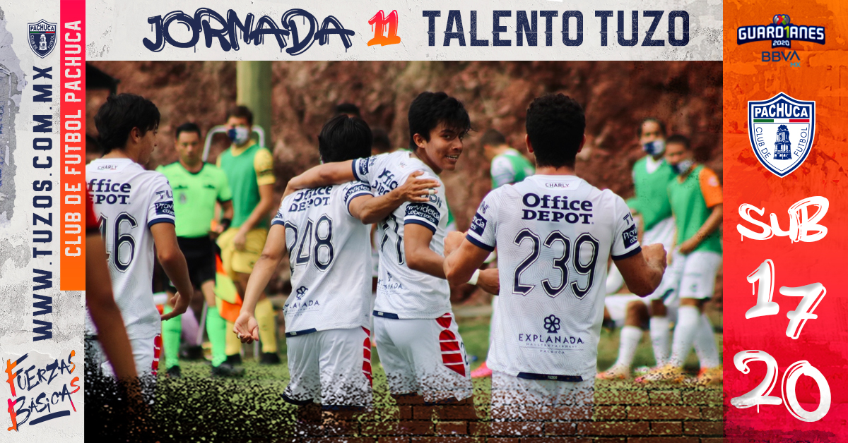 ETZATLÁN, JALISCO.- La Jornada 11 del torneo Guard1anes 2020 dejó resultados favorables para las Fuerzas Básicas del Club Pachuca, de 7 puntos posibles el Talento Tuzo consiguió 5, la escuadra Sub-17 sumó su cuarto triunfo consecutivo y sumó el punto adicional de la serie de penales, mientras que el equipo Sub-20 dejó ir los 3 puntos ante Atlas.