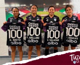 EL CLUB PACHUCA RECONOCIÓ A 4 TUZAS POR LLEGAR A 100 PARTIDOS EN LA LIGA MX FEMENIL