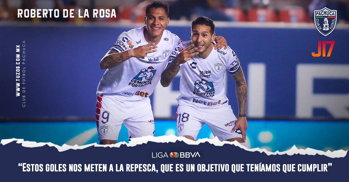“Estos goles nos meten a la repesca, que es un objetivo que teníamos que cumplir; estamos aquí en la pelea; Pachuca siempre está para competir en lo más alto”: Roberto de la Rosa
