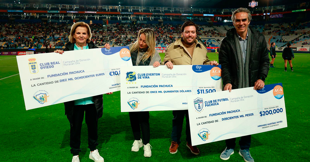 Estos donativos fueron el compromiso institucional realizado al día siguiente del siniestro, de realizar el donativo de un porcentaje de las taquillas de los partidos de local de los equipos del Grupo Pachuca en beneficio de los damnificados por el huracán ‘Otis’, que impactó en días pasados las costas de el Estado de Guerrero, confirmando así su responsabilidad con el pilar social institucional y con quienes más lo necesitan en nuestro país y la sociedad en general.