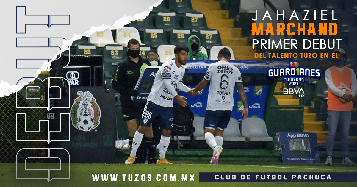 LEÓN, GTO.- Más allá del punto conseguido por los Tuzos en su duelo de la Jornada 2 del Guard1anes Clausura 2021 en tierras guanajuatenses ante la Fiera del León, destacó que al minuto 75’ del encuentro se dio el primer debut en el torneo de algún futbolista surgido de las Fuerzas Básicas del Club Pachuca. El turno de presentarse en la Liga MX fue del mediocampista Jahaziel Marchand, en sustitución del ‘Pocho’ Víctor Guzmán.